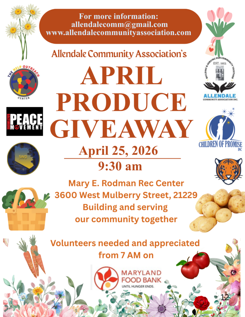 • Allendale Community Association Produce Giveaway – April 25th, 9:30am (while supplies last) (Volunteers arrive at 7am) Flyer attached