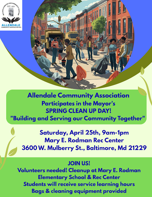 • Allendale participates in the Mayor’s Spring Cleanup – April 25th, 9am-1pm (Bags & Cleaning Tools Provided) Flyer attached (Community Service Learning Hours honored for students)