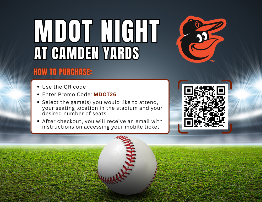 *** Flyer attached — MDOT DAY – ORIOLE PARK at CAMDEN YARDS!!  Invitation for my family, friends and colleagues to attend one of the below games at a discounted price! Seats are