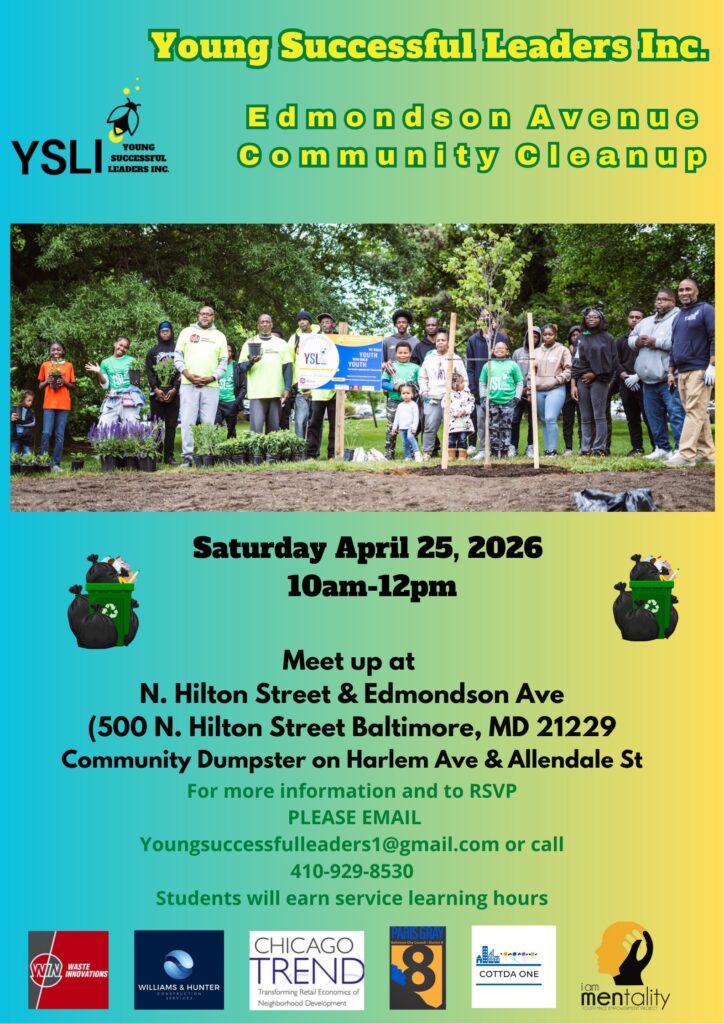 Young Successful Leaders, Inc. will host their Edmondson Ave. Community Cleanup on April 25th, 10am. Please see the attached flyer for all details!